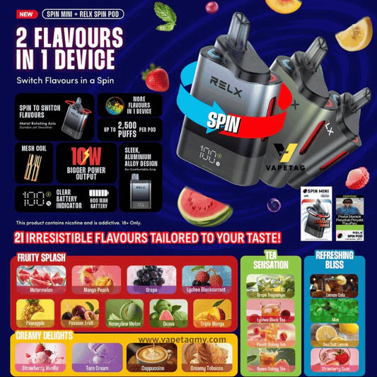 正品悦刻RELX Spin Mini Lux旋钮式双口味创意电子烟一杆两烟弹套餐-多口味可选