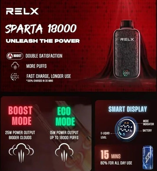 正品悦刻大黑盒斯巴达 RELX Sparta 24000口一次性电子烟-大容量混合果味/智能液晶显示屏